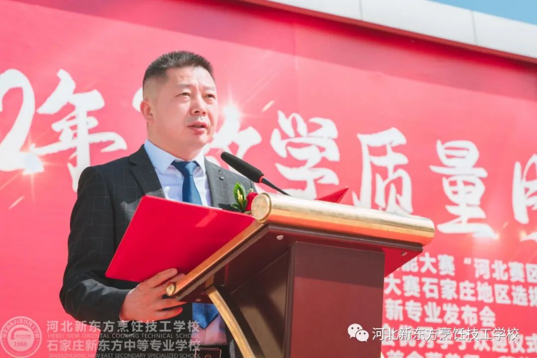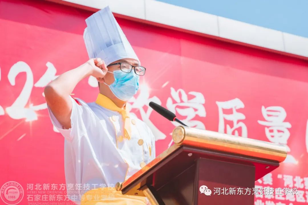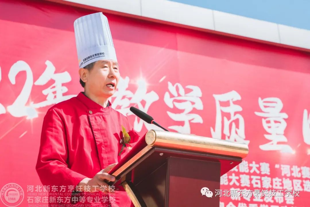 在今天的開幕式現(xiàn)場,我校校、評委代表、選手代表分別發(fā)表講話,石家莊新東方中等學校名譽校長秦喜福宣布開幕!本次涵蓋中餐熱菜、中餐冷菜、果蔬雕刻、中式面點、西餐熱菜、西點烘焙等比賽模塊,來自不同的選手參賽,他們各展所長,用實力與激情奉上一場精彩紛呈的饕餮盛宴。